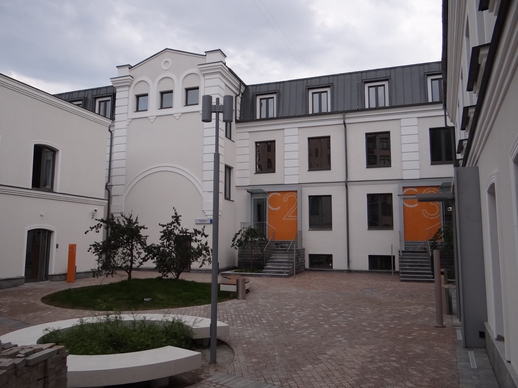 Попасть на территорию делового комплекса можно как через двор, так и через основное здание. В парковой части делового квартала размещены тринадцатиэтажные строения, офисное здание в пять этажей, несколько особняков высотой до трех этажей: последние станут идеальным вариантом для размещения компаний, которым важна приватность и отсутствие соседей в здании.
